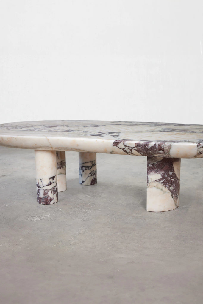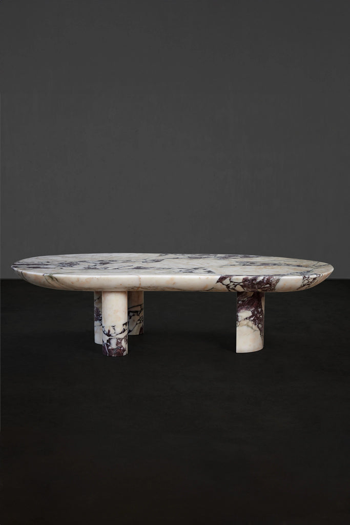 This marble coffee table serves as a convergence of art and nature, beautifully fashioned from the finest Calacatta Viola marble hailing from Tuscany's Carrata region, distinguished by its prominent purple veining.