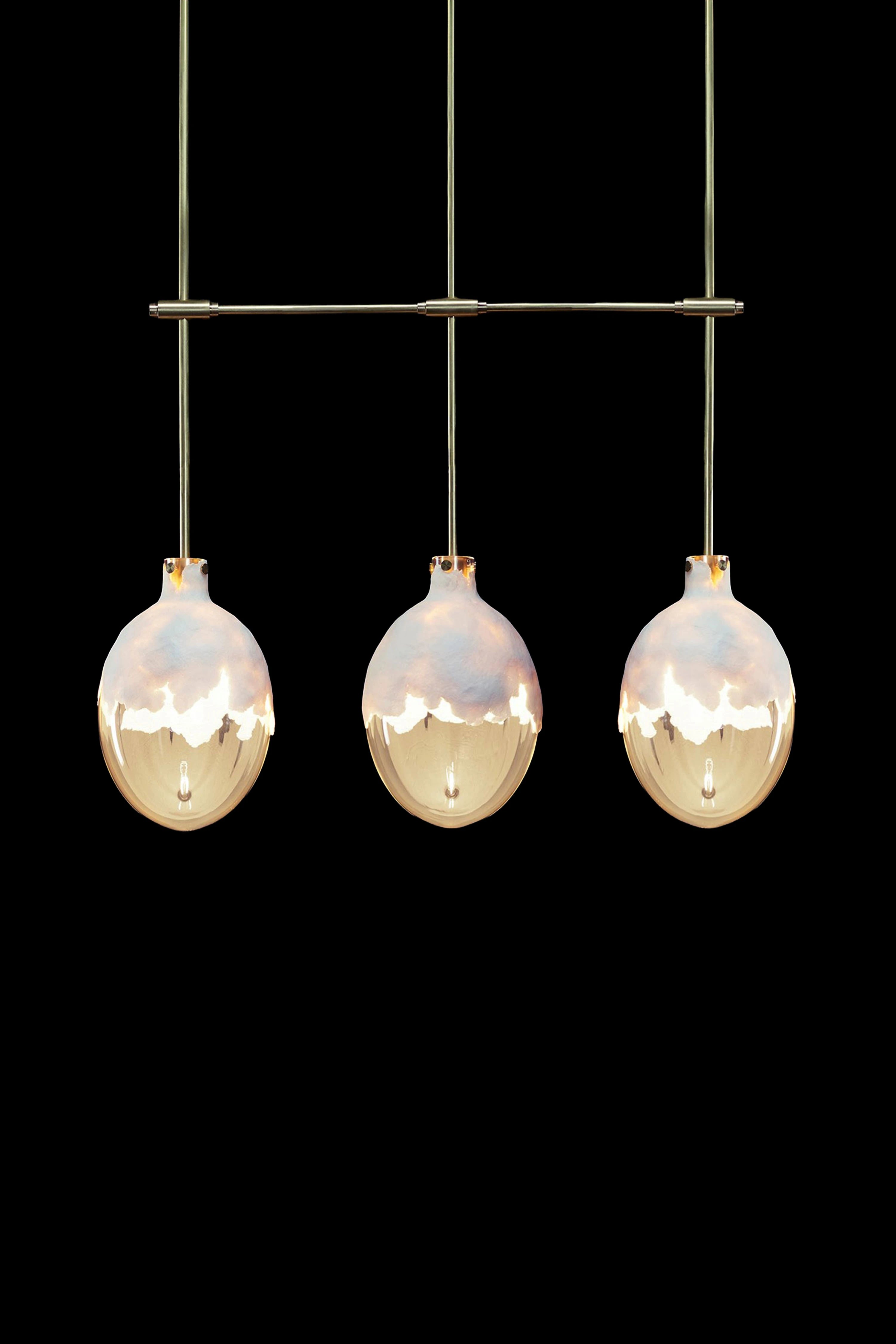 GLOW 3 IN LINE are modern glass chandeliers designed by architect and designer Sophie Dries. Inspired by Inner Glow, the GLOW collection distills its grandeur into compact forms suitable for the contemporary home.