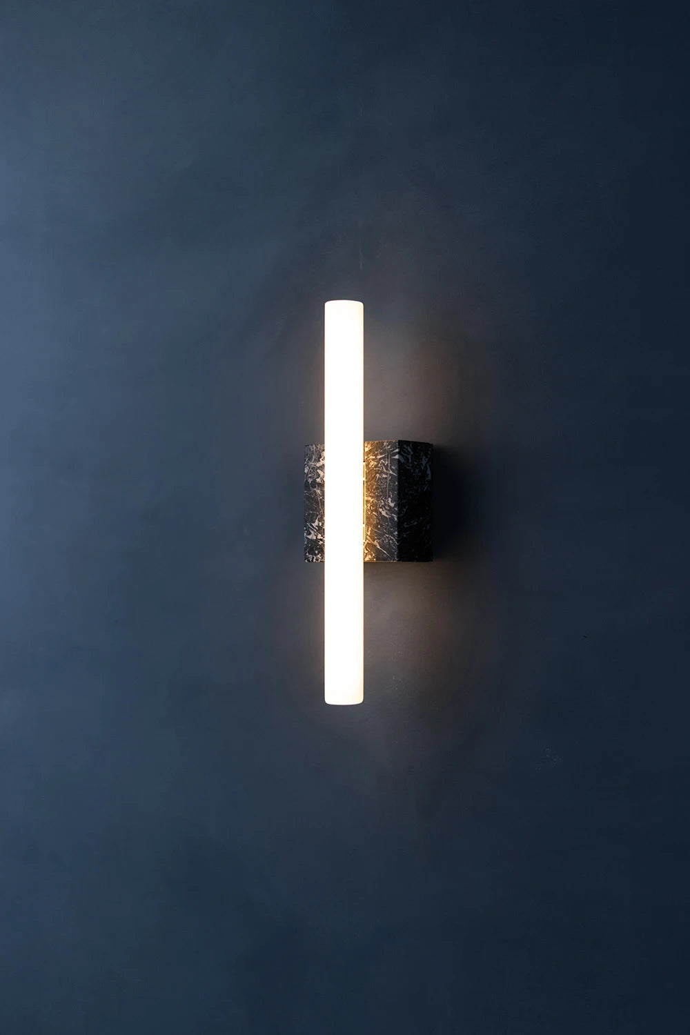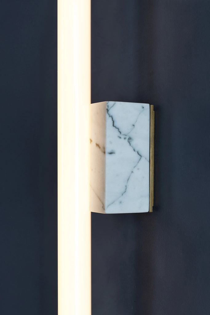 Designed in collaboration with Banda Property, the NEA MARBLE WALL LIGHT mounts our classic NEA Wall light onto a block of boldly veined marble with a brass backplate. In doing so, we add tonality and depth of perspective to the lighting object. Each piece is entirely unique due to the properties of the natural marble – choose from white, amber, black, black veined and grey marble blocks and a range of brass finishes.