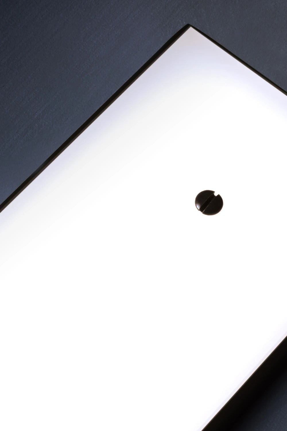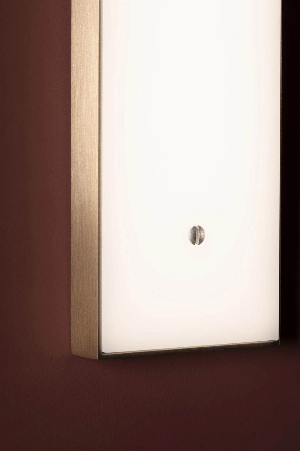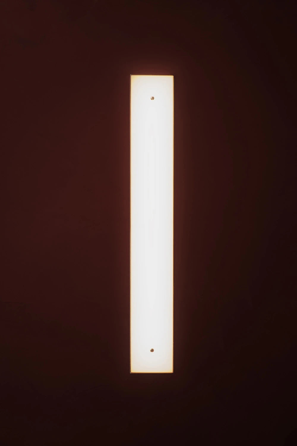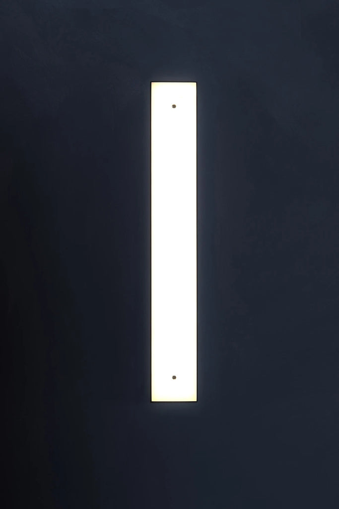 Developed specifically as a contemporary bathroom light or modern hallway lighting, LED technology and craftsmanship combine in SIM, a series of pared-back wall lights. Clean and refined, a letter box-shaped 500 mm brass base supports a clear and even panel of light that can sit flush with the wall, recessed or extended outwards to suit the space. In its large iteration, SIM Frame is crafted at a width of 80mm.
