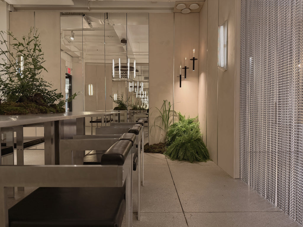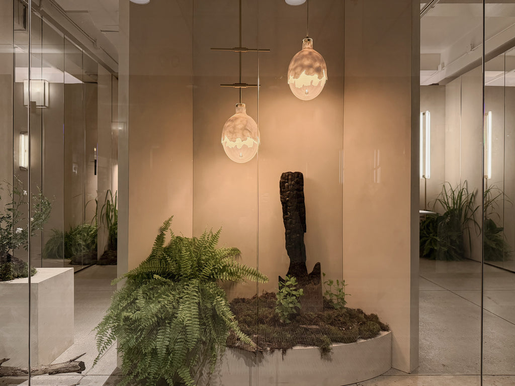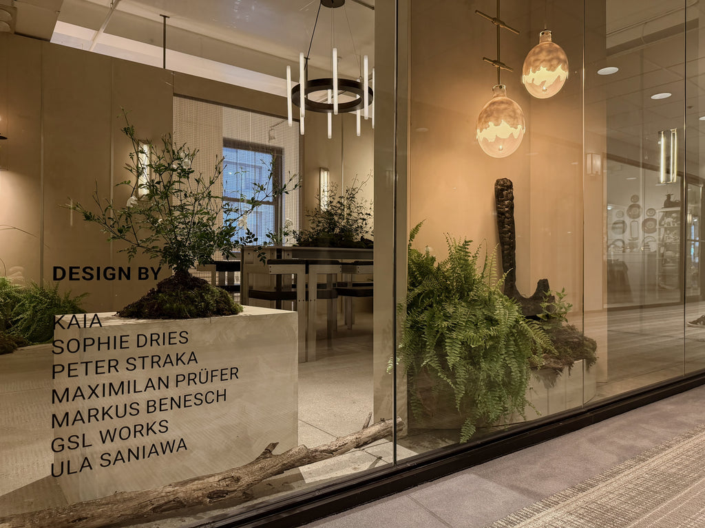 For WNWN2025 at the New York Design Center, KAIA reimagined its showroom as a nature-infused installation — a quiet dialogue between light, stone, moss, and glass.